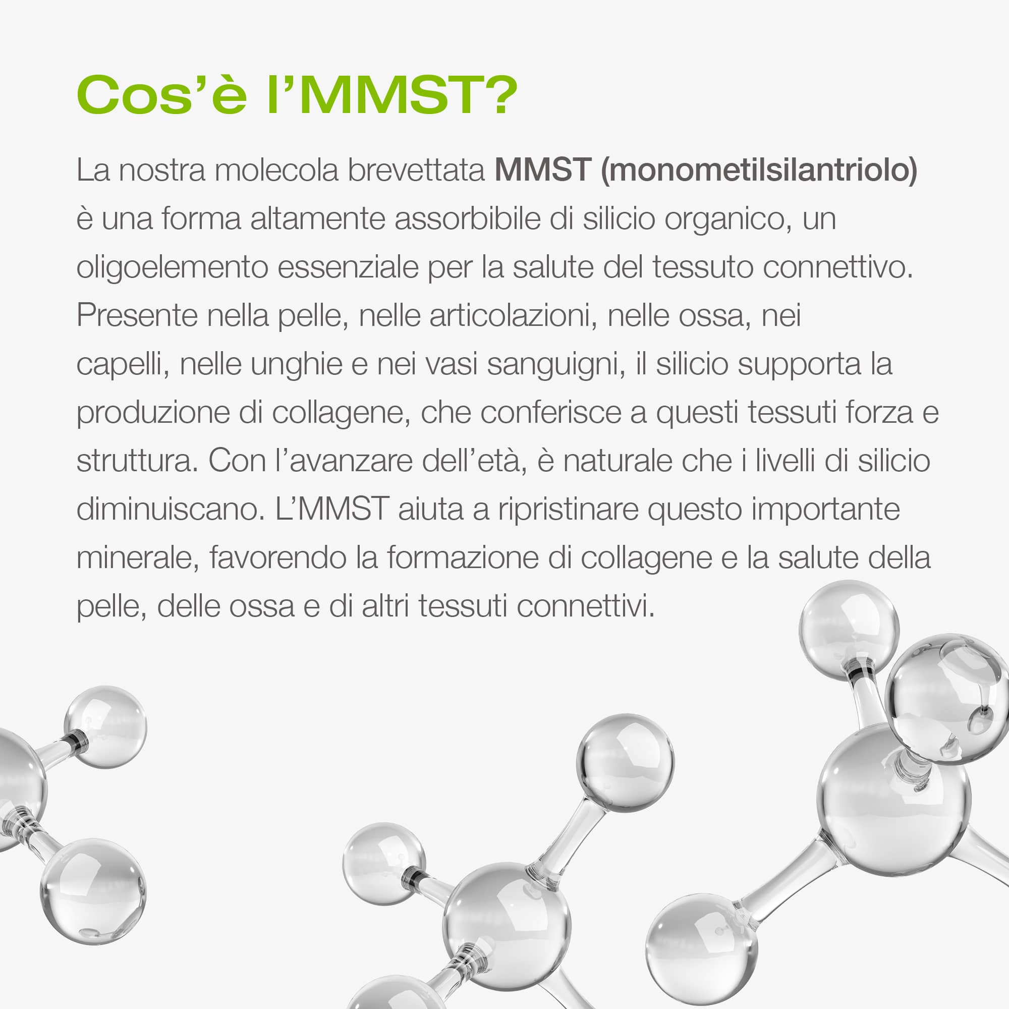 Basato sulla nostra molecola brevettata MMST (monometilsilantriolo), l'Integratore alimentare è scientificamente pensato per fornire un supporto ineguagliabile per la pelle, le articolazioni, le ossa, il cuore e il sistema immunitario. Siamo la migliore fonte originale di MMST per la longevità.